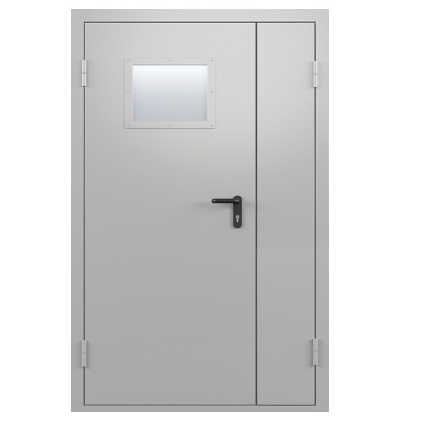 Дверь металлическая технического назначения двупольная ДТМО-01 с остеклением размером 2100x1300 (ШxВ) устанавливается внутри помещений и в качестве наружных дверей на входе/выходе из помещений.