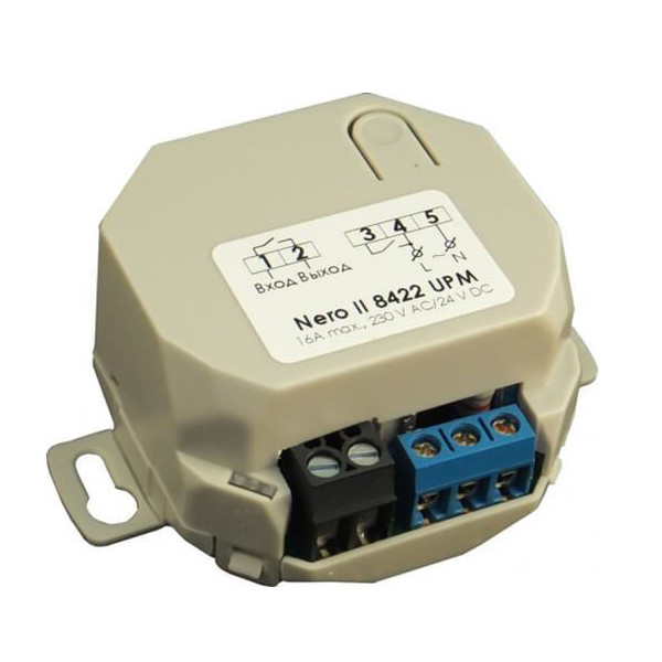 Исполнительное устройство Nero II 8422 UPM применяется для управления системами освещения, электродвигателями, климатическим оборудованием и т.д. Еще одна область применения – обустройство управляемых розеток.