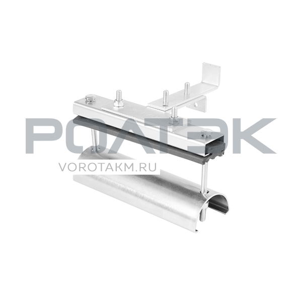 Подвес 327.050.RC30/RC35 грузоподъемностью до 35 кг используется для стационарного крепления кабеля или шланга с торца направляющей токоподвода в зоне накопителя. Высота кабельного гнезда регулируется крепежом, который входит в комплект. Отгиб верхней пластины служит упором для тележек. Отверстие на отогнутой части нижней пластины является местом крепления карабина 386 с цепью разгрузки кабеля 385. Закрепление подвеса начального – фрикционное. Для надежной фиксации рекомендуется при монтаже засверлить шуруп в направляющую через специальные отверстия в пластинах.