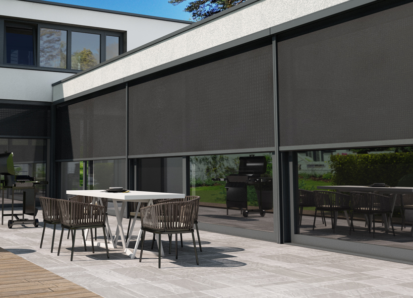 Внешняя солнцезащита гарантирует комфорт частной жизни без посторонних взглядов. Система сохраняет обзорность на видовые точки участка, дает естественным образом циркулировать воздуху и проникать освещению, реализуя проект уютного дома. Решение особенно актуально для построек с панорамным остеклением и уличных конструкций, таких перголы и террасы, где хочется добиться эффекта приватности.