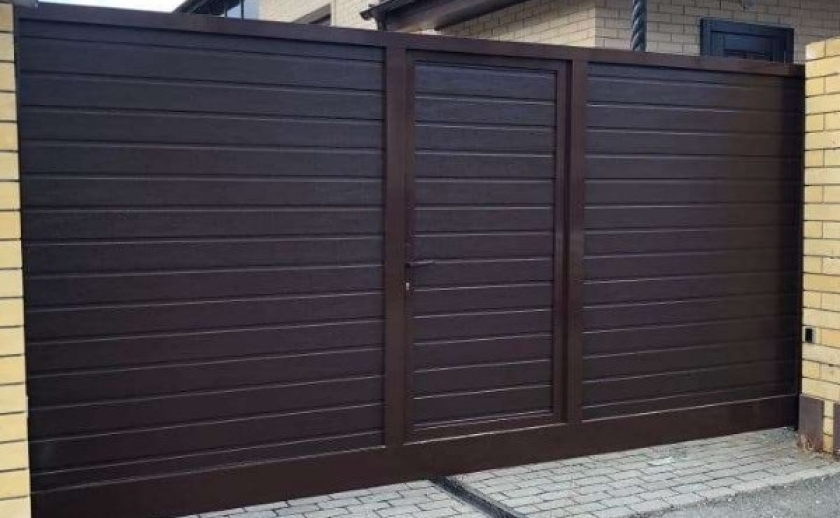Для дополнительного комфорта откатные ворота для дачи и промышленных объектов можно дополнить отдельно стоящей калиткой, которая обеспечит удобный проход на территорию.