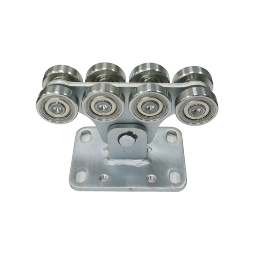 Опора оснащена стальными роликами, предназначена для перемещения полотна самонесущих откатных ворот. Для регулировки опоры по высоте используются оцинкованные болты М12х50 DIN933.